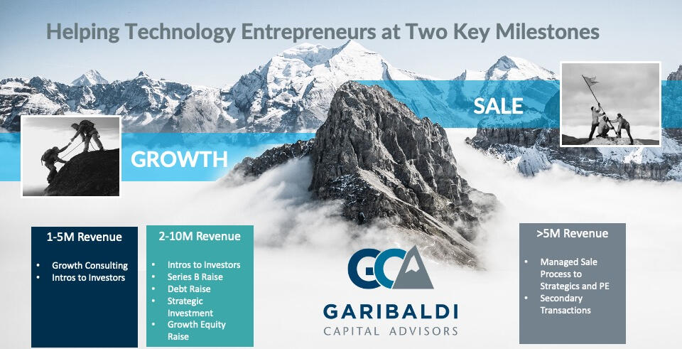 Garibaldi’s team has over 100 years of corporate finance experience in technology transactions, many of the team members working in the technology finance sector since the mid 90s.Garbaldi's team also has tech industry entrepreneurial and technical expertise unmatched by other boutique investment bankers.